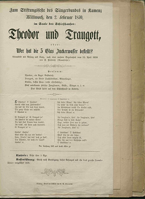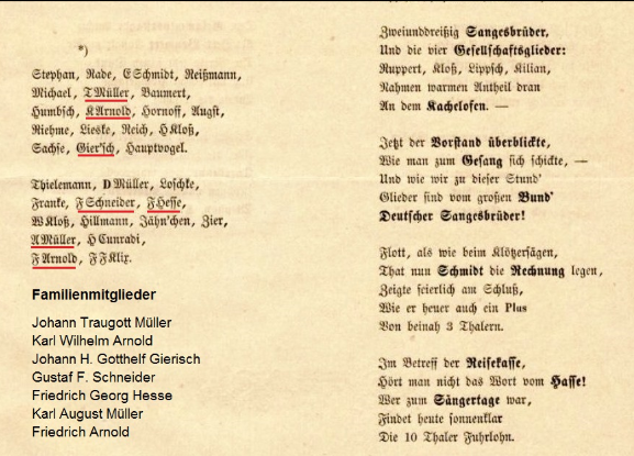Die Kamenzer Handwerkerfamilien prägten nicht nur die Wirtschaft und Politik ihrer Stadt über Jahrhunderte, sie waren auch maßgeblich am Kultur- und Vereinsleben beteiligt. Ein wichtiger sozialer Treffpunkt war im 19. Jahrhundert der Kamenzer Sängerbund. Mitglieder waren auch die Familien der Tuchfabrikantenfamilie Arnold/ Müller.