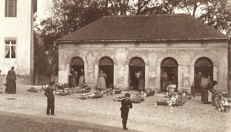1853 werden die Topfhallen gebaut. Sie dienen der Töpfer-Innung zum Verkauf ihrer Waren. Über Jahrhunderte hinweg begrenzte sich die Innung, indem nicht mehr als fünf Handwerksmeister Mitglied werden durften.