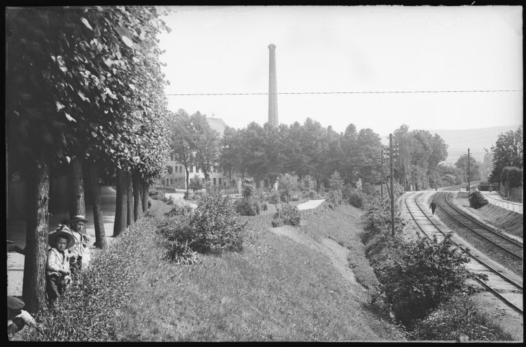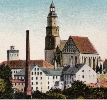 Blick auf die Tuchfabrik von Oskar Müller aus Richtung Pulsnitz.