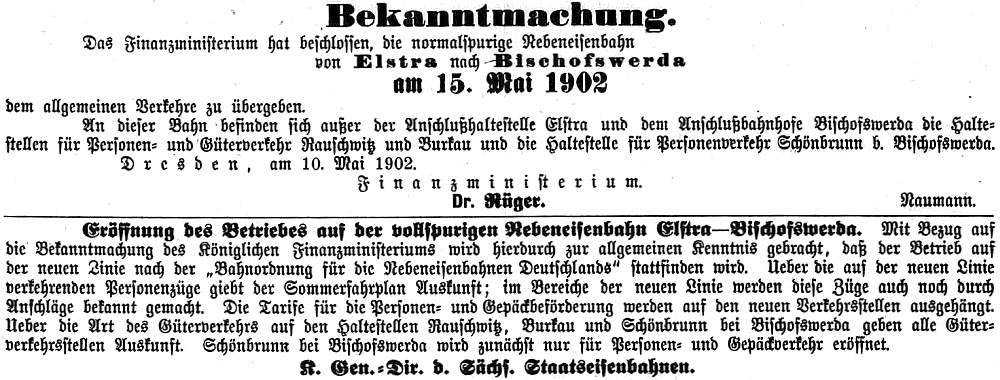 Dieser wiederum konnte am 15. Mai 1902 seiner Bestimmung übergeben werden. Immerhin wurde dadurch indirekt eine Verbindung von Kamenz mit Bautzen hergestellt. Letztlich stiegen die Reisenden im Umsteigebahnhof Bischofswerda in den Zug, der aus Kamenz kommend auch über Radeberg erreicht werden konnte.