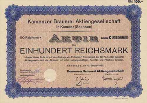 Im Jahr 1926 wird „Sachsenquell“ als Kamenzer Biermarke eingetragen. In etwa um diese Zeit muss die Umwandlung der Brauerei in eine Aktiengesellschaft vollzogen worden sein.