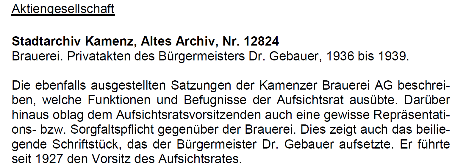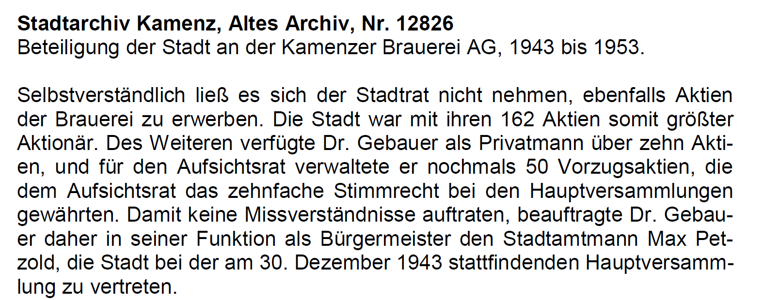 Mehrheitseigner der Brauerei war die Stadt Kamenz.