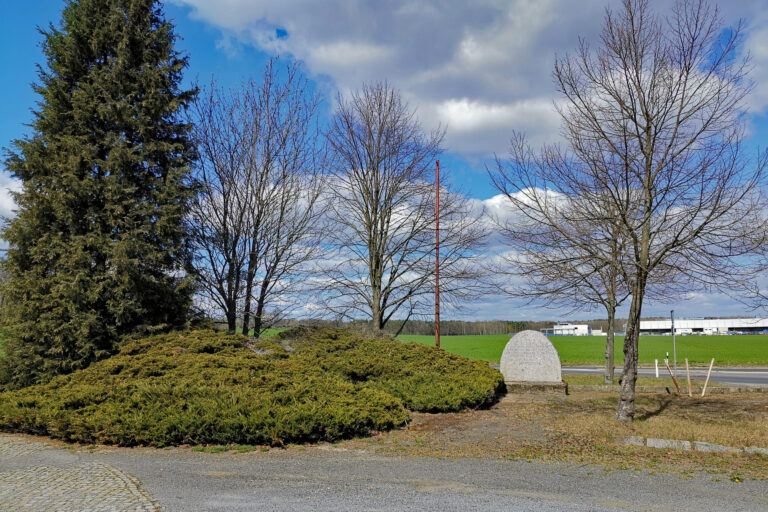 Gedenkstein zur Erinnerung an die Übergabe der Stadt Kamenz am Ende des Zweiten Weltkrieges an der Kreuzung Bernbruch-Cunnersdorf.
