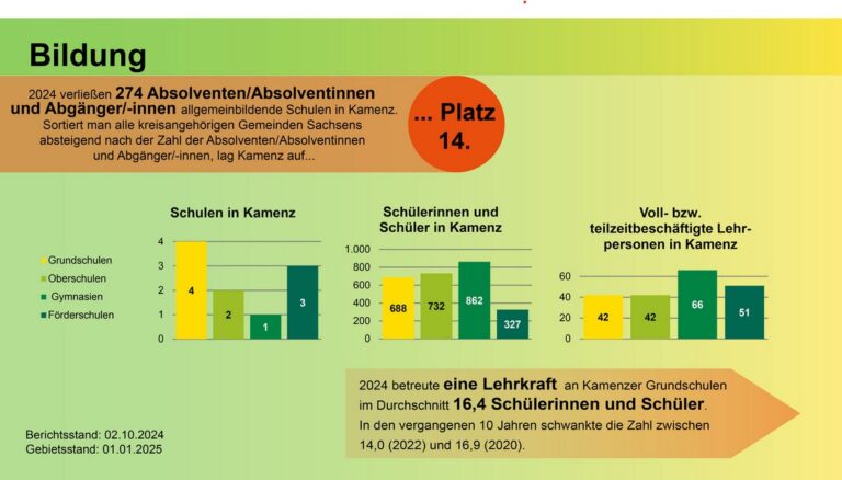 Das Statistische Landesamt des Freistaates Sachsen hat seinen Sitz in Kamenz. 2025 feiert die Stadt Kamenz ihr 800-jähriges Jubiläum. Wir haben zwar keine statistischen Informationen von vor 800 Jahren, aber wir können mit vielen aktuellen Zahlen rund um unsere schöne Stadt aufwarten.