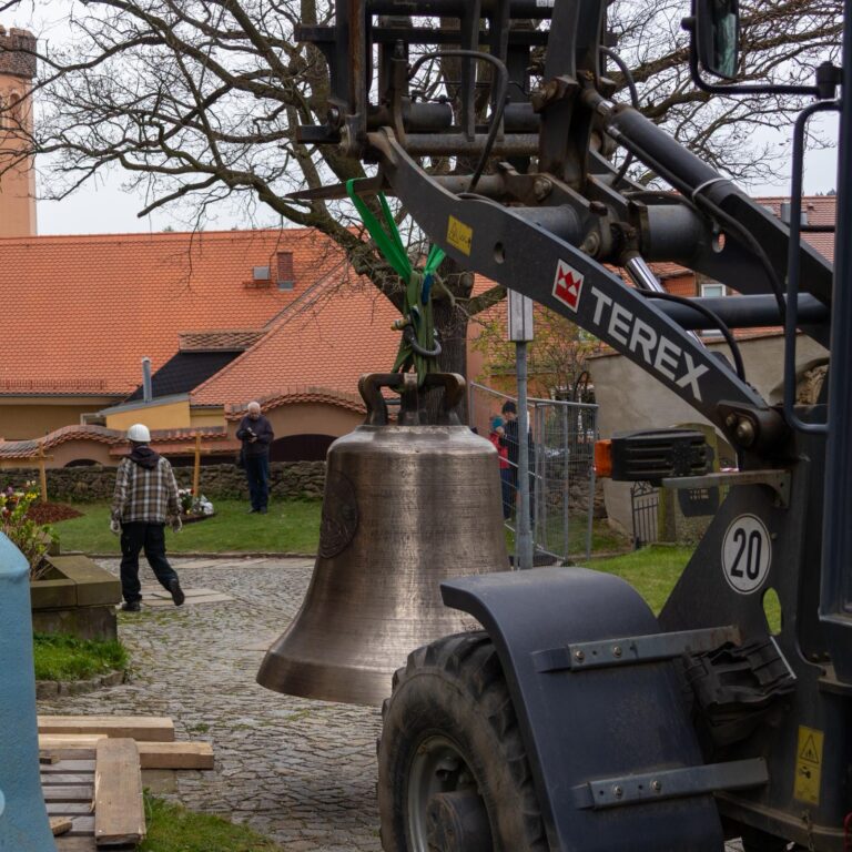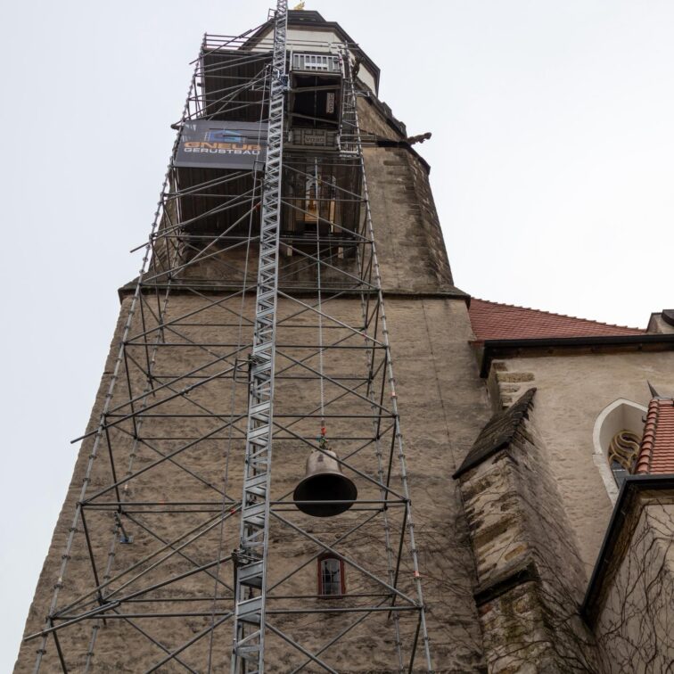 Es war wieder ein großer Moment in der über vierhundertfünfzigjährigen Geschichte der Kamenzer Hauptkirche St. Marien. Die neuen Friedens- und Christusglocken sowie die instandgesetzte Hilliger-Glocke von 1576 wurden am Dienstag, den 14. April 2026, per Kettenzug in den Glockenturm eingehoben. "Dank Fördermitteln und zahlreichen Spenden konnte die neue Friedensglocke angefertigt werden – ein Symbol der Hoffnung, gegossen aus robustem Eisenhartguss, mit einem Gewicht von rund 700 Kilogramm. Hinzu kommt die sogenannte neue Christusglocke. Die schwerere der beiden Glocken, ebenfalls aus Eisenhartguss, bringt stolze 1.000 Kilogramm auf die Waage. Außerdem konnte noch die ehrwürdige Hilliger-Glocke von 1576 instandgesetzt werden. Sie ist ein wichtiges Herzstück des fünfstimmigen Arsenals. Nach 450 Jahren im Dienst waren die Abnutzungen am Schlagring so massiv, dass eine Sanierung unumgänglich war. ... Nach gründlicher Untersuchung auf Risse und einer behutsamen Strahlung erstrahlt die älteste Glocke der Kirche nun in neuem Glanz – inklusive eines frisch aufgesetzten Schlagrings sowie neuen Mittelöhrs zur Aufhängung", so Ina Förster, die dem Ereignis beiwohnte.